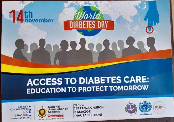 The National Association of Seadogs (NAS), Kaduna Chapter, under the leadership of Amb. (Dr.) Obinna Okpara, has joined the rest of the world to commemorate World Diabetes Day, to raise awareness in local communities about the dangers of diabetes and how to prevent it.